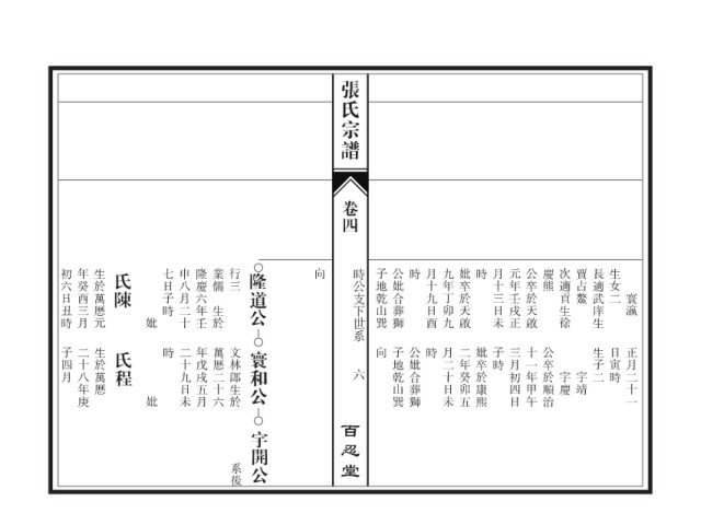 初六日丑時 年癸酉三月 生於萬厯元 氏陳 七日子時 申八月二十 隆慶六年壬 業儒 行三 隆道公 向 時公支下世系 子地乾山巽 公妣合葬獅 時 月十九日酉 九年丁卯九 妣卒於天啟 時 月十三日未 元年壬戌正 公卒於天啟 慶熊 次適貢生徐 賈占鰲 長適武庠生 生女二